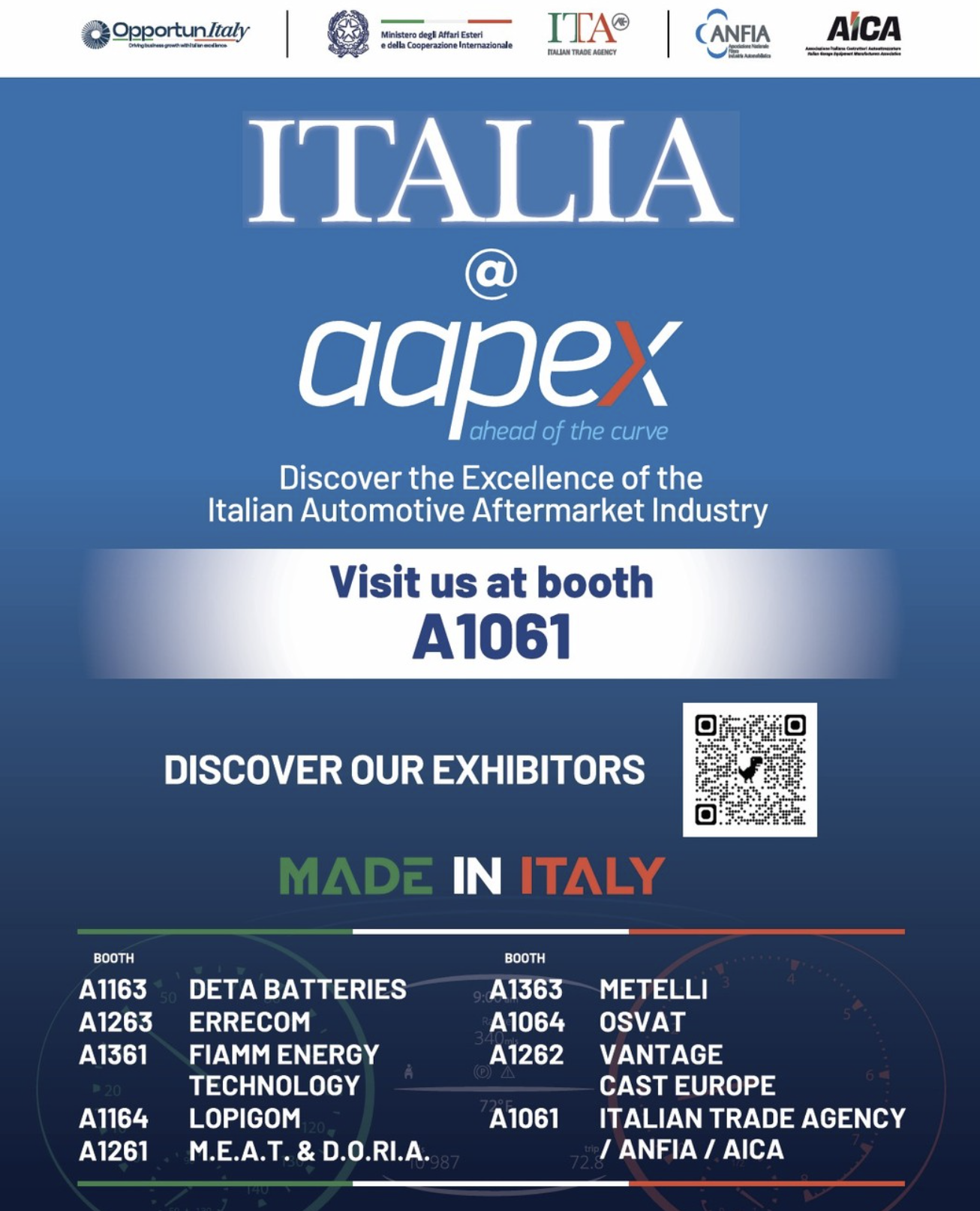 The Italian Trade Agency (ITA) , in collaboration with ANFIA and AICA, returns to Las Vegas from November 4 to 6, 2025, to showcase the state-of-the-art of the Italian automotive aftermarket industry.